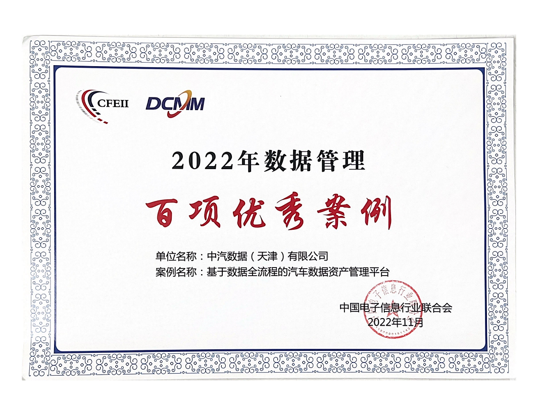 资质能力 | 中汽数据《基于数据全流程的汽车数据资产管理平台》获评2022年数据管理百项优秀案例