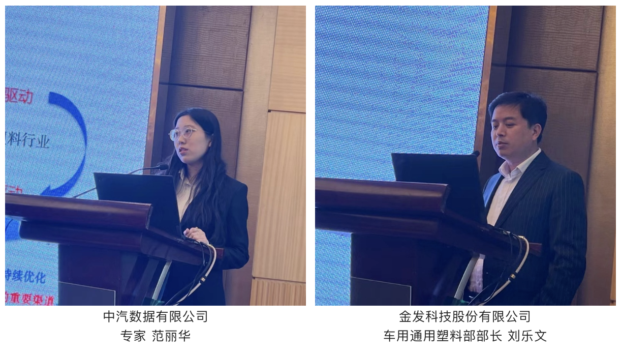 会上,中汽数据有关专家围绕《车用再生塑料使用规范 第1部分:通则》及《车用再生塑料使用规范 第2部分:聚丙烯(PP)》的草案标准体系研制进展、标准框架内容介绍、标准研究下一步规划三个方面进行了介绍,来自金发科技的刘乐文部长则就再生塑料关键技术与汽车产品的实际应用进行了实践经验分享。