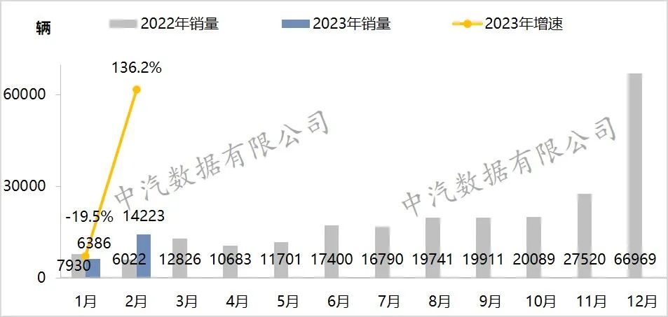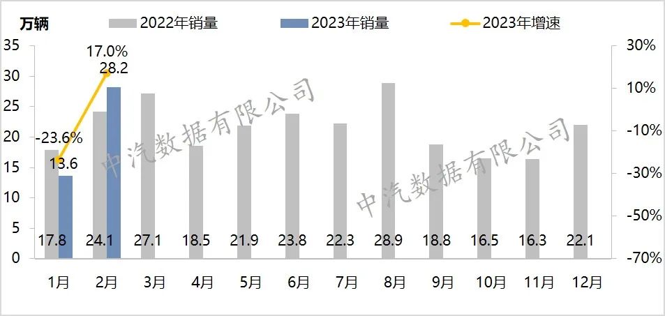 图1 2023年2月整体汽车市场销量走势图